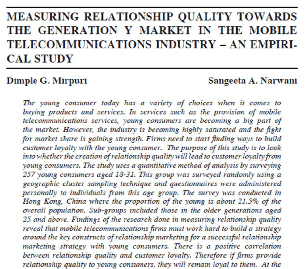 Measuring Relationship Quality Towards The Generation Y Market In The Mobile Telecommunications Industry – An Empirical Study | Dimple G. Mirpuri & Sangeeta A. Narwani