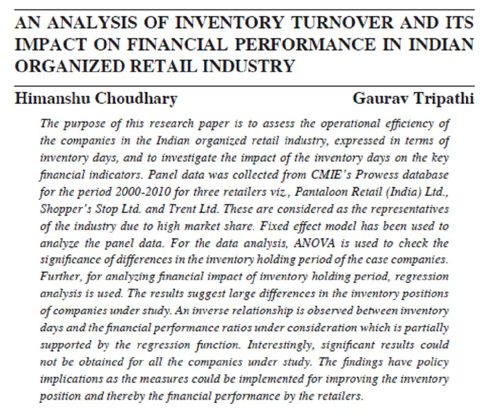An Analysis Of Inventory Turnover And Its Impact On Financial Performance In Indian Organized Retail Industry | Himanshu Choudhary & Gaurav Tripathil