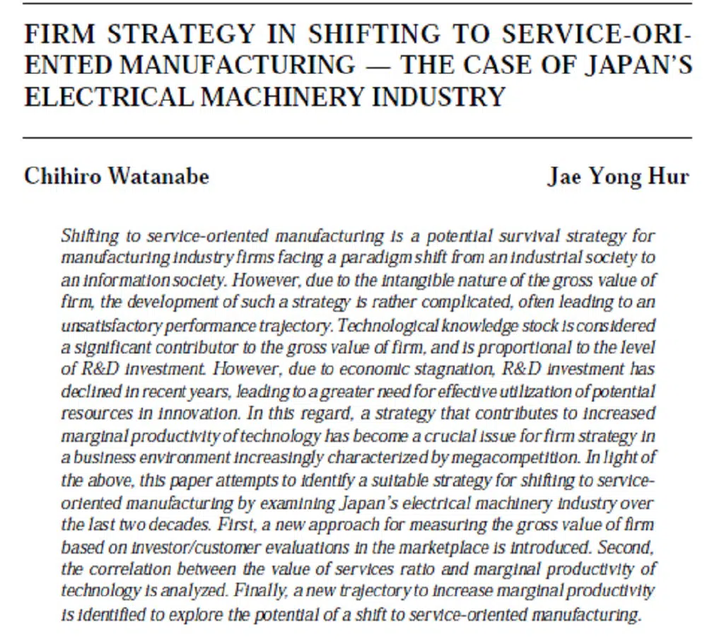 Firm Strategy In Shifting To Service-Oriented Manufacturing – The Case Of Japan’s Electrical Machinery Industry | Chihiro Watanabe & Jae Yong Hur