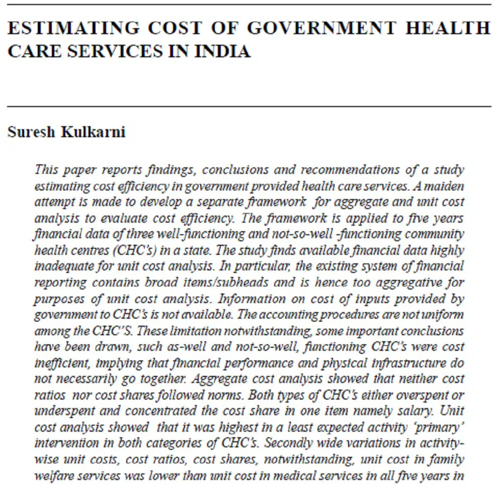 Estimating Cost Of Government Health Care Services In India | Suresh Kulkarni