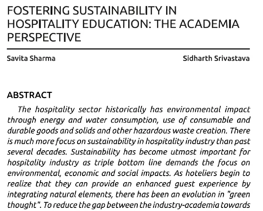 Fostering Sustainability In Hospitality Education -The Academia Perspective | Savita Sharma & Sidharth Srivastava