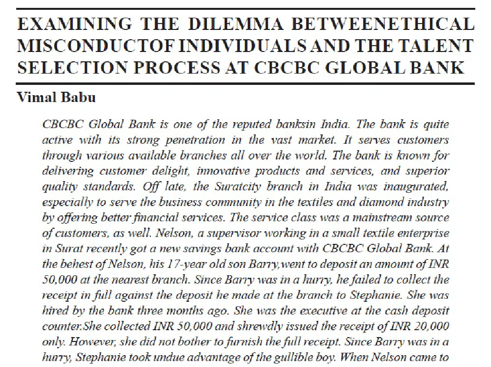 Examining The Dilemma Between Ethical Misconduct Of Individuals And The Talent Selection Process At Cbcbc Global Bank | Vimal Babu